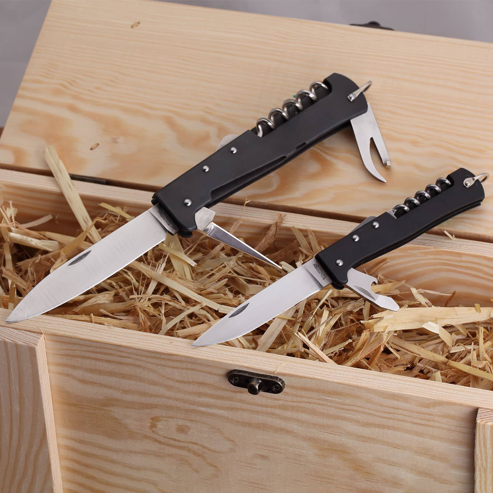 Das Mercator Multifunktionsmesser 10-440 wird nach alten Mustern und vergilbten Zeichnungen aus den 1930er Jahren produziert. Die Neuauflage ist wie früher mit verschiedenen Werkzeugen ausgestattet – einer arretierbaren Messerklinge, einer Ahle zum Lösen von Knoten und Stechen von Löchern in Leder, einem Dosenöffner und dem Korkenzieher. Das große Multi hat eine Grifflänge von 127mm und eine Klingenlänge von 90 mm. Das kleinere Modell verfügt über einen Kapselheber und einen Korkenzieher. Es hat eine Grifflänge von 95 mm und eine Klingenlänge von 75 mm.